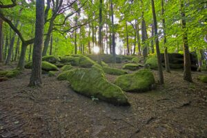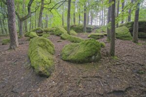 Durch abwechslungsreichen Wald führt dieser Premiumweg vorwiegend über Pfade und schmale Wege. Immer wieder trifft man auf Felsformationen. Am Ungeheuersee, der als Teil eines kleinen Hochmoores als Naturdenkmal geschützt ist, befindet sich ein großer Rastplatz mit der Weisenheimer Hütte des Pfälzerwaldvereins. Da der Weg nur durch Wald führt, findet man hier auch an strahlungsreichen Tagen immer ausreichend Schatten.
