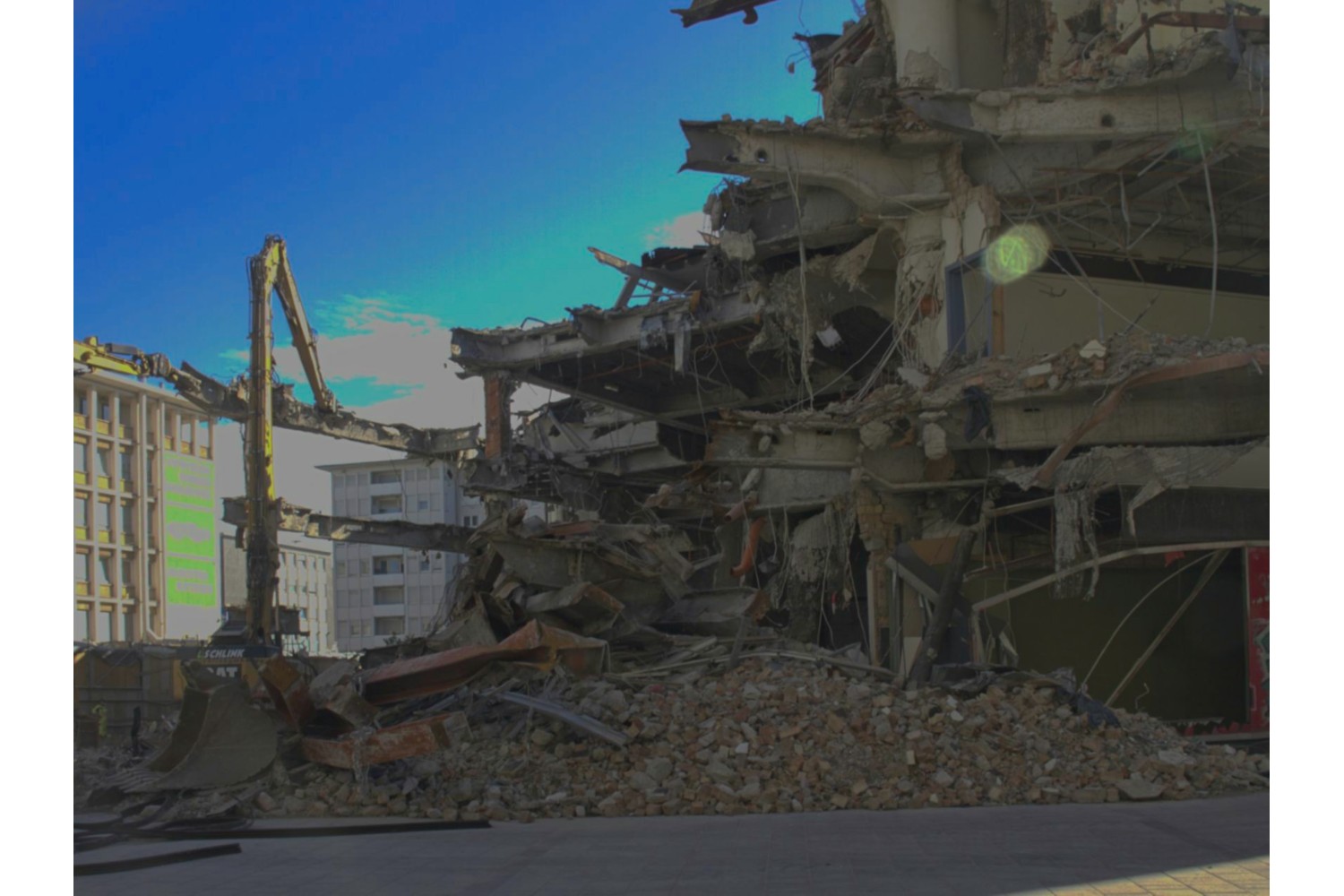 Abriss: Der Abriss des Kaufhauses begann im April 2015 und war im September desselben Jahres abgeschlossen.