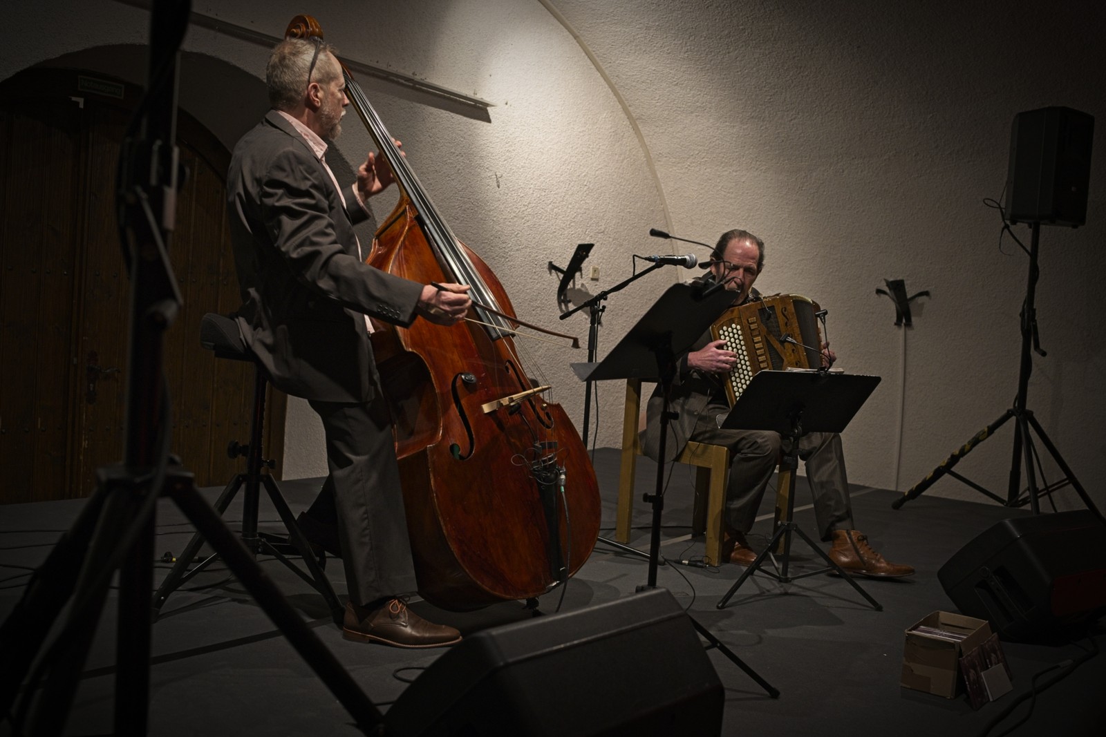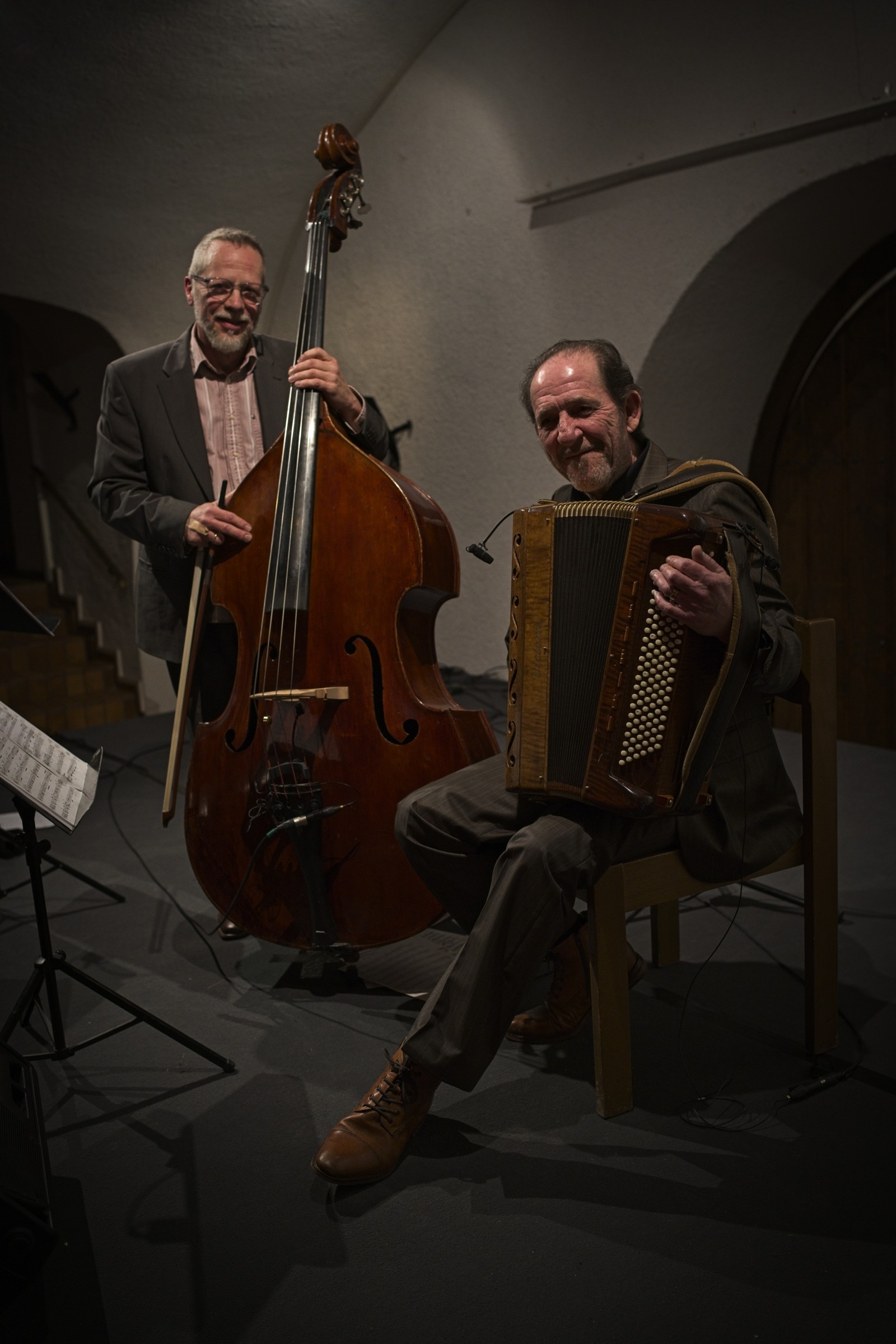 Tango, Milonga, Vals. So mag es Anfang des letzten Jahrhunderts aus den Kneipen der Vorstädte von Buenos Aires geklungen haben: roh und ungeschminkt – die hörbar gemachte Gefühlswelt von Einwanderern und Geächteten, die von Traurigkeit, Sehnsucht und Einsamkeit geprägt war. In diesem Geist bringen Laurent Leroi und Michael Herzer den Tango und seine musikalischen Verwandten Milonga und Vals auf den Punkt – wunderschön, schlicht und schnörkellos mit Akkordeon und Kontrabass.