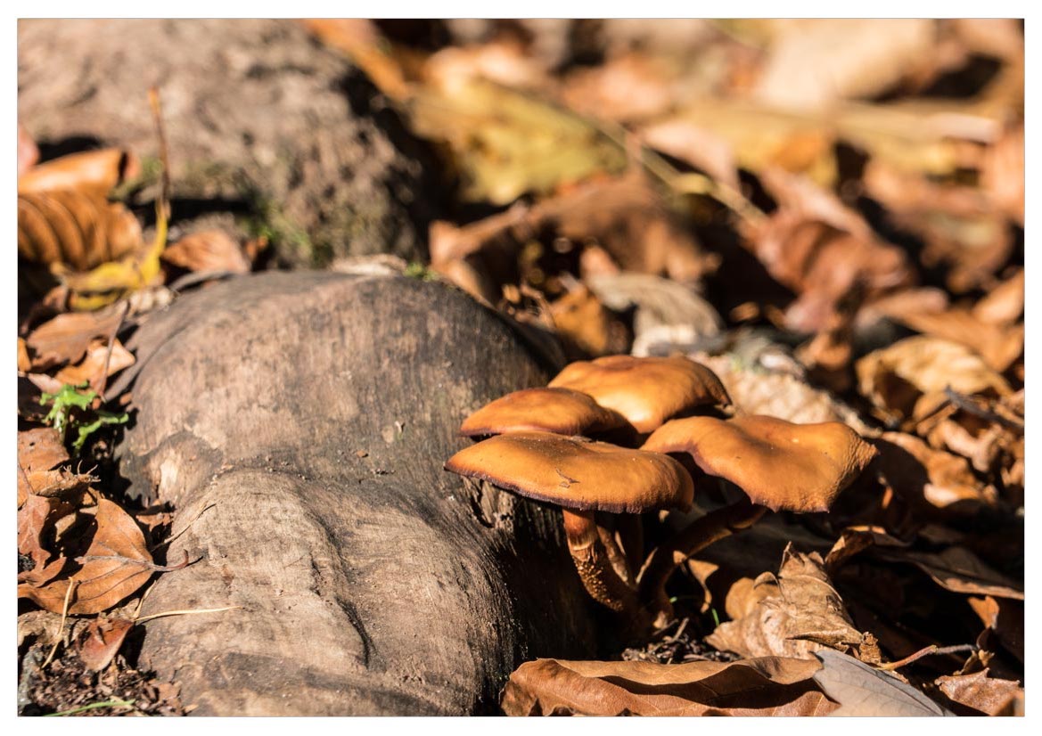 Vom Parkplatz führte uns ein markierter Wanderweg zu den „Drei Buchen“. Von dort ist es ein kurzes Wegstück hoch zur Ruine. Der Ausblick über den herbstlichen Wald war fantastisch: Ortsfremde die wir trafen, schwärmten von diesem Ausblick. Auf dem Weg hin und zurück, sahen wir so manchen Pilz am Wegesrand, der zum Fotografieren „Zwang“.